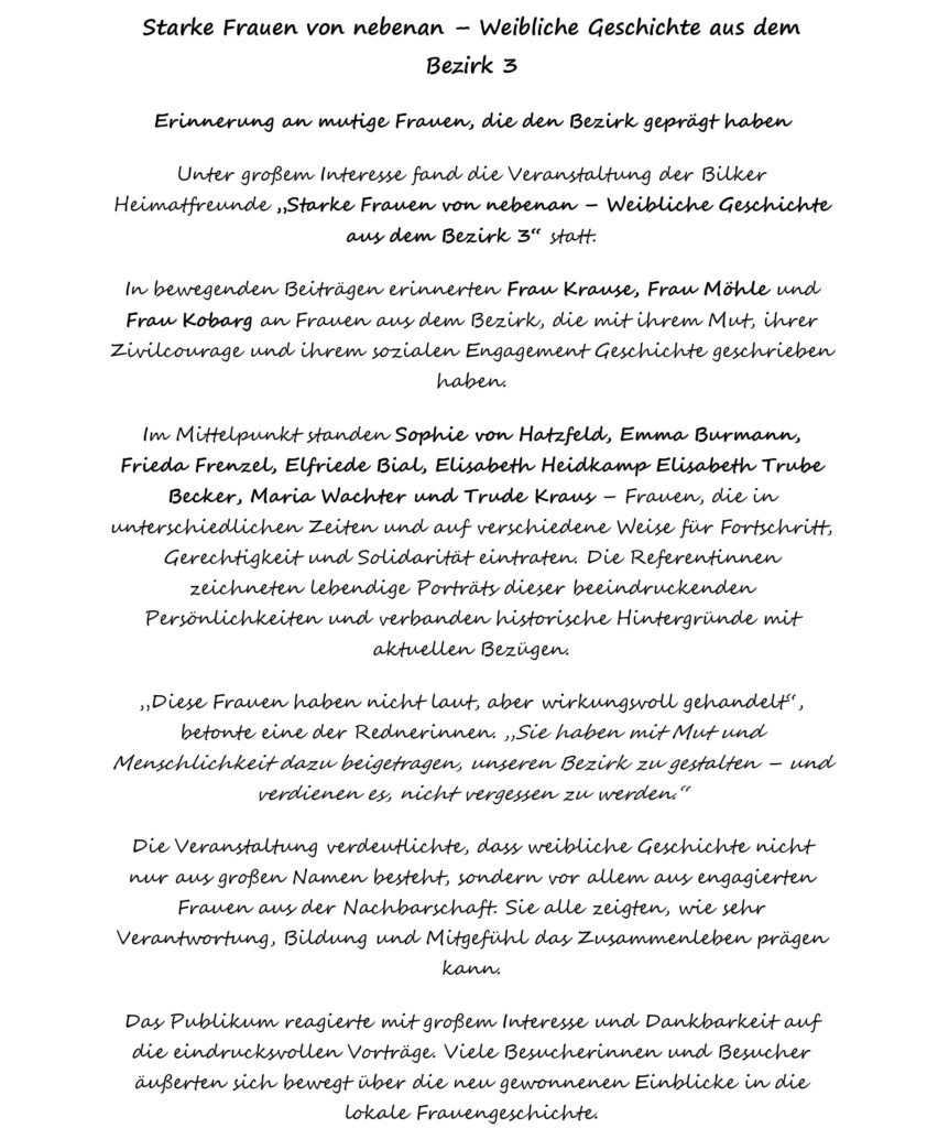Vortrag „Starke Frauen von nebenan „der Bilker Heimatfreund